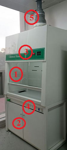 3.1 Hình dáng các bộ phận chính của tủ hút khí độc được minh họa trên hình 1.